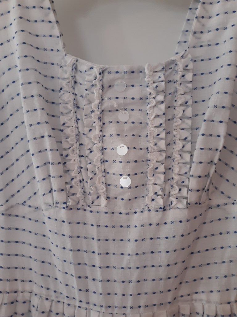 1. I like the mint one and the white one. I agree–they don’t make them like they used to. When I was young, like in grade school, I was heavy so Mother made most of my clothes. She was an excellent seamstress. The detail was exquisite. I’ve kept some of them and would love to give them to a museum.