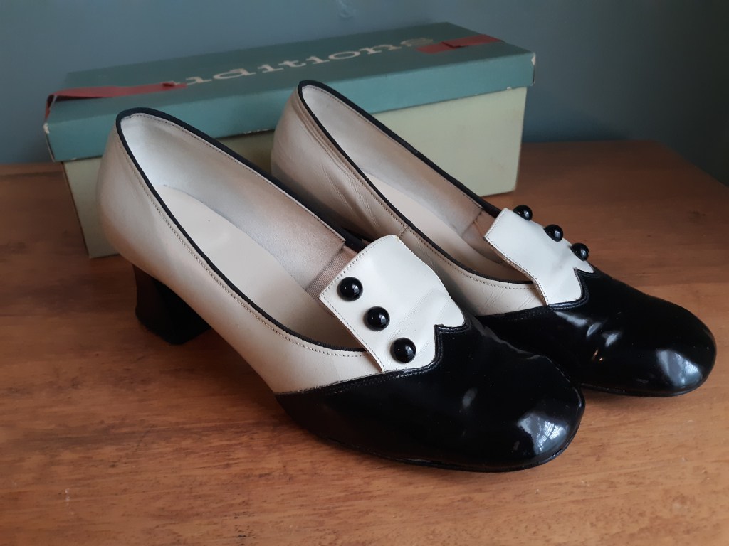 A friend recently listed for sale several pairs of vintage shoes she had found in the attic of her house. Though I love vintage clothes, I have never tried to get any vintage shoes because almost all of them are heels. I almost completely quit wearing heels after living in Mexico because of the risk of twisting an ankle there. These were so pretty and mostly low heels…and they all fit me! My friend gave me a great deal on five pairs.