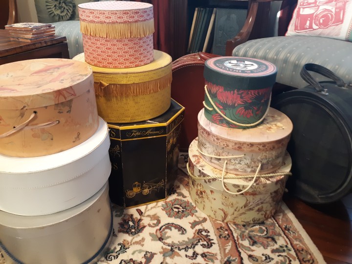 One of the funniest surprises of organizing was realizing how many hat boxes I had. I almost took this picture twice before I remembered another one tucked away. I was also very surprised to find I had an entire satin wedding gown (with a long train) in a bag in a wooden chest!