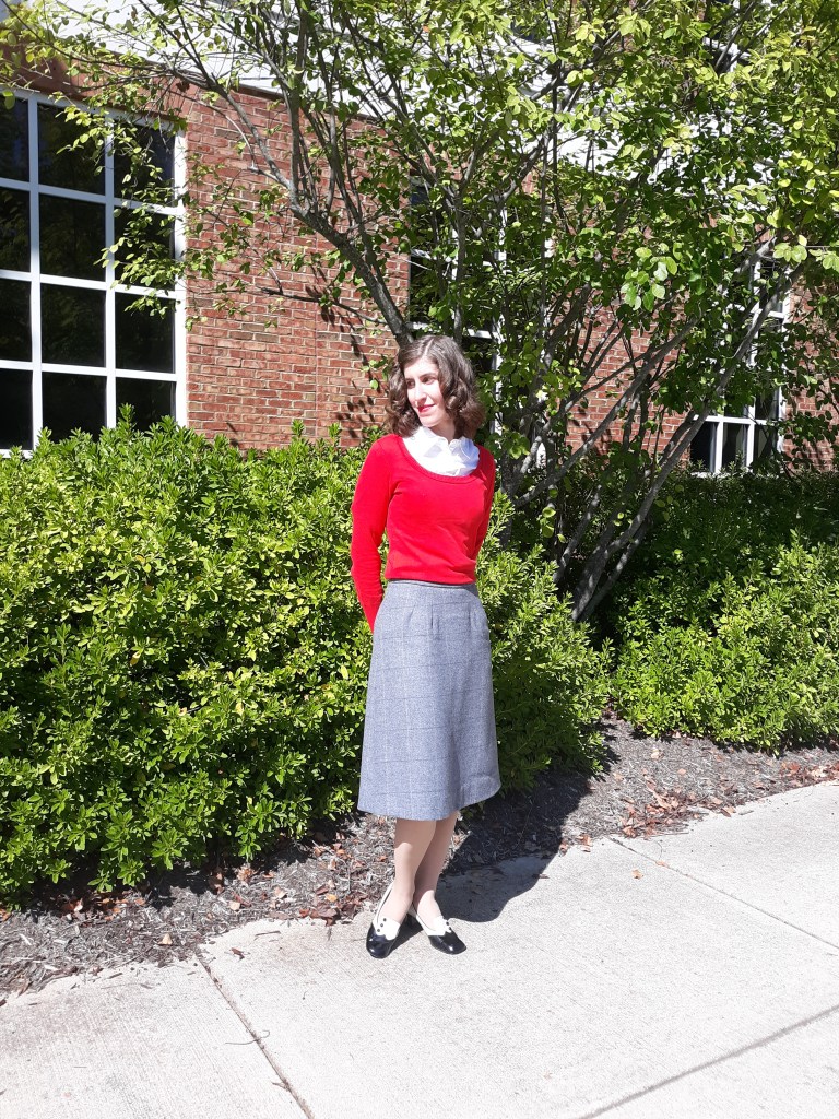 I was in the mood to make something versatile for fall/winter. I have a few lovely lengths of wool in my fabric stash. Unfortunately, most of them are only about a yard long, which definitely limits what you can make with them. I was hoping for a nice wool skirt, in a 1940s style which could be worn in either fall or winter depending on how I styled it. Though I have lots of vintage patterns, I could not find anything like what I was picturing in my head which would also work for such a small length of fabric.