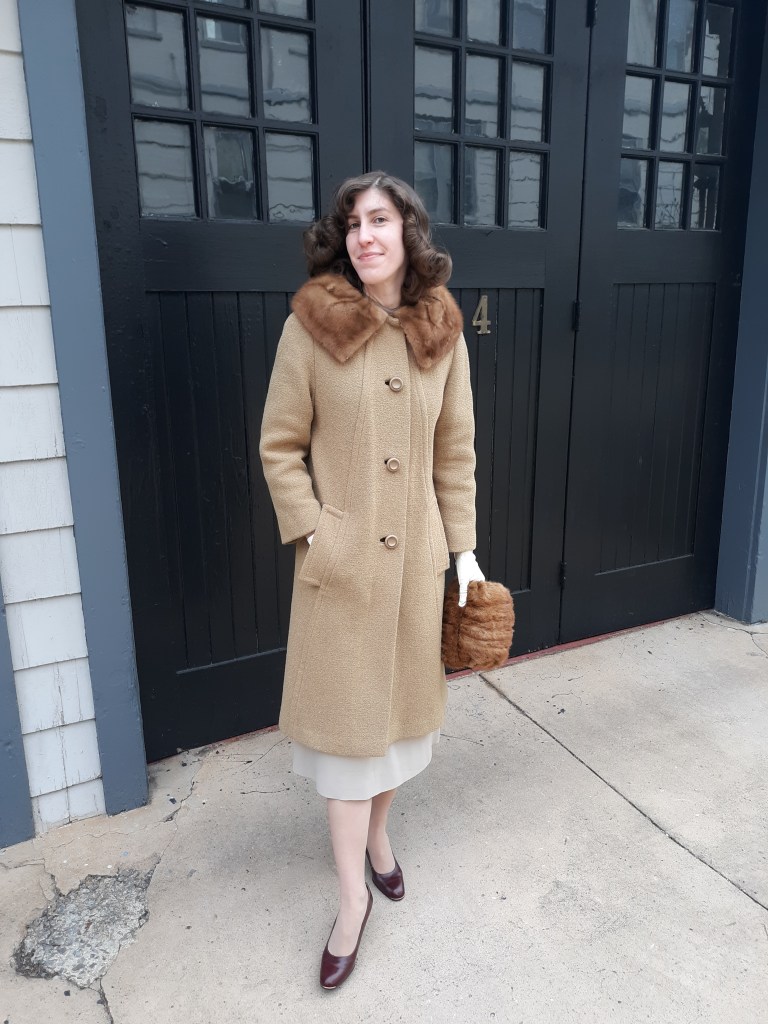 While the clothing of the late 1950s/early 1960s tended to be fitting (or at the least the bodice was fitting even if the skirt was full), the coats of the era are incredibly boxey. I don’t generally prefer this style, but these two worked for me because they weren’t as boxey as some others. Even though they weren’t fitted at the waist, they did have a slight A-line. For the tan coat, the A-line effect was mostly an optical illusion created by the seam lines and top stitching.