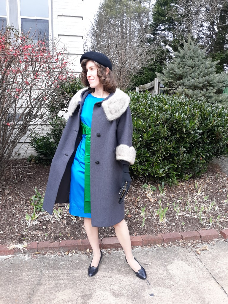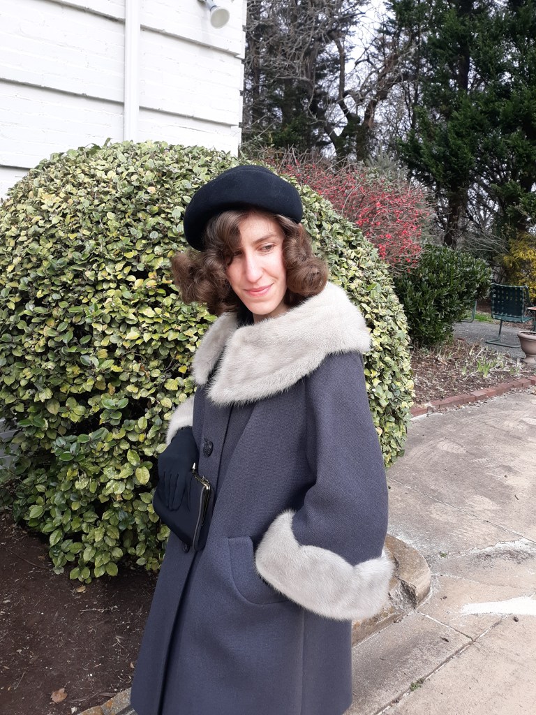 On this one, you can see the silhouette gradually gains fullness toward the bottom. This worked better for me than a straight, boxey cut. This style is also called a swing coat. I heard a theory about one of the reasons they became extremely popular in the 50s and 60s. The baby boom was happening and it was easier to hide a pregnancy for longer under the loose shape, (especially at this time when pregnancies were kept private for longer). Swing coats made more sense than the fitted style of the 1940’s, especially since good quality coats were an investment and you wouldn’t necessarily have multiple coat options.