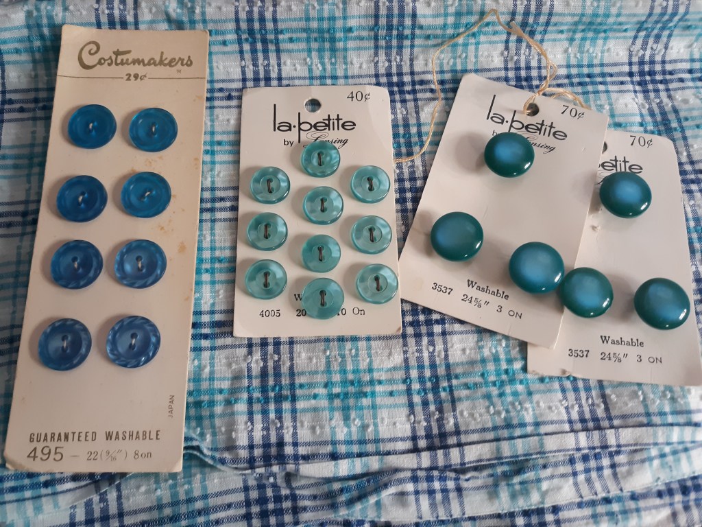Here you can see a progression in prices over a few decades for similar buttons, starting at 29 c through 70 c. Now, most sets of buttons will be a couple dollars.