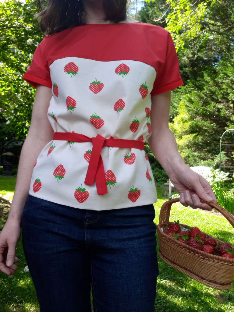 I think I like the strawberry print with the solid bright red even better than I would have liked it on its own! I made a belt as well but will probably wear it without the belt more often.