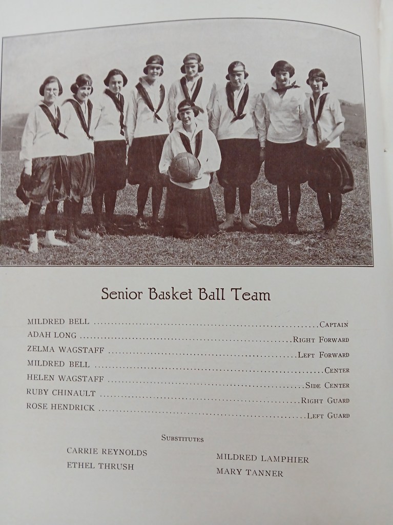 Of course, I’m sure you’ll also want to see the 1923 women’s basketball team! They had six positions instead of five (not sure if was the same for men at the time?) They were a little crazy with clubs, for sports, based off of their city of origin, music, home economics, theater, etc. There were also several clubs based on people having the same name (an Elizabeth club, Louise club, Virginia club, Frances club, Mary club, etc.) There was a full two-page spread listing weddings that year, as well as some comics.